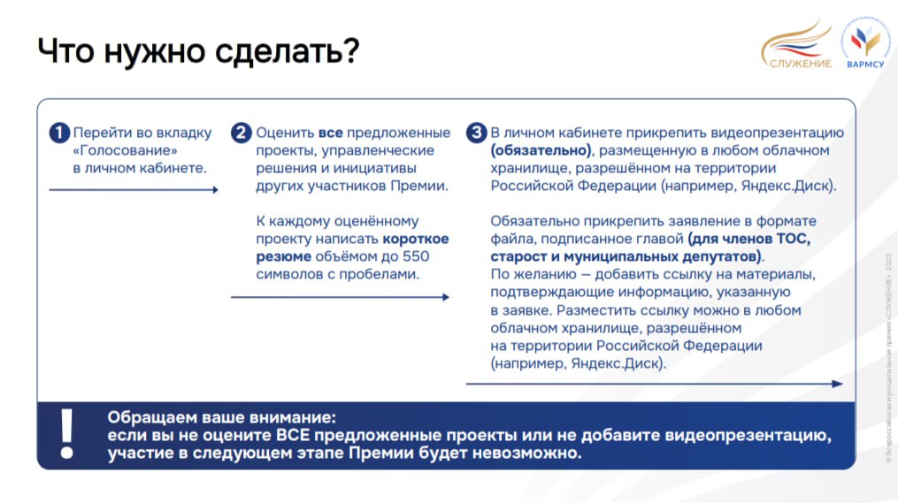 До 14:00 (мск) 18 января 2026 года участникам Премии нужно завершить два обязательных этапа — Перекрестную экспертизу и заполнение полей «Шаг 3» в личном кабинете на сайте премияслужение.рф.